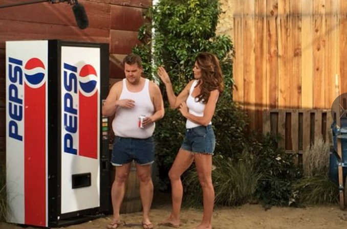 Cindy crawford pepsi james corden. In 2018 Crawford joined forces with her son Presley Gerber for a revamped take for Super Bowl. Having some fun. James Corden debuted a reboot of the classic.