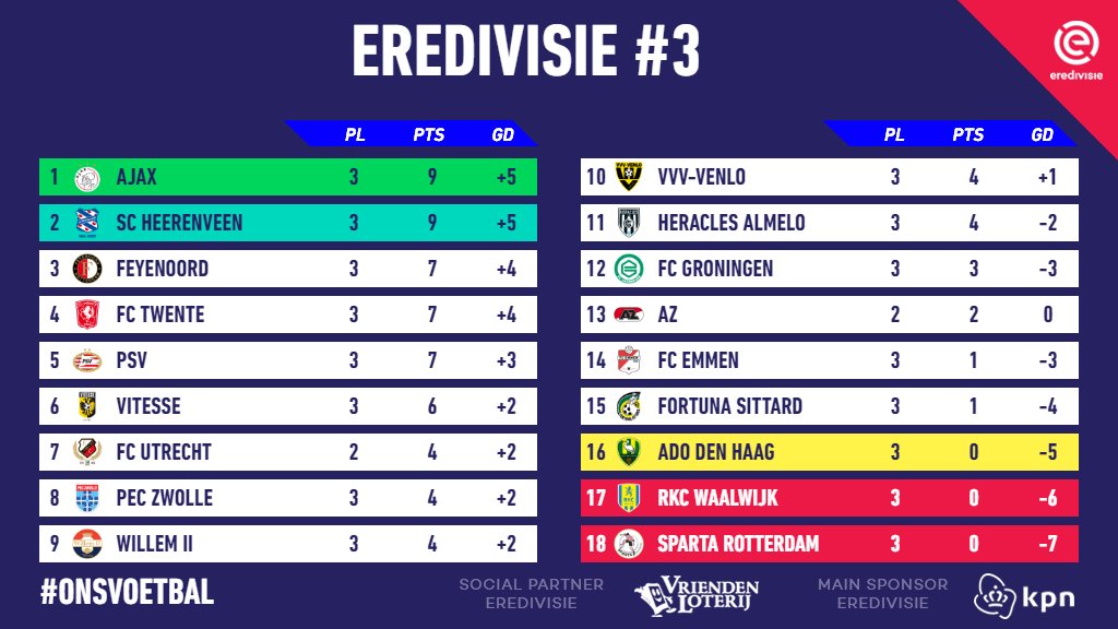 Eredivisie On Twitter Matchweek 3 Op Welke Plek Staat Jouw Favoriete Club Onsvoetbal Eredivisie